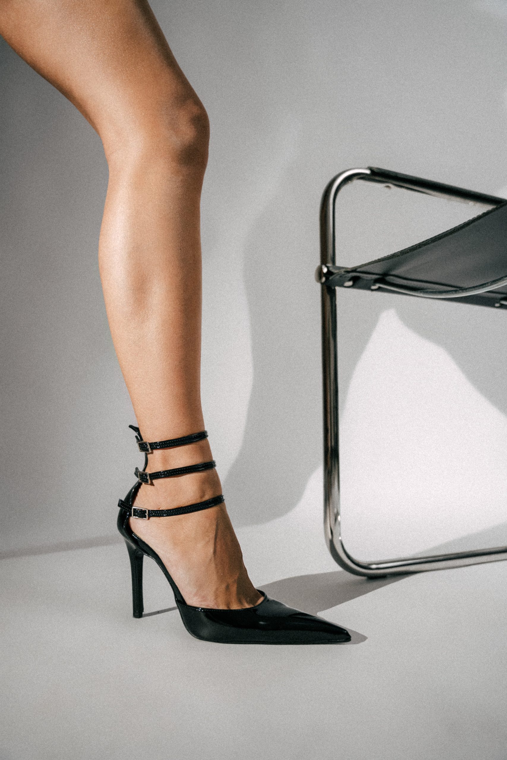 Μυτερή λουστρίνι γόβα με 3 λουράκια και ιδιαίτερη φτέρνα , που αγκαλιάζει τέλεια το ποδι σας . Εξαιρετικά άνετο και ιδανικό για να απογειώσει ολες σας τις εμφανίσεις .