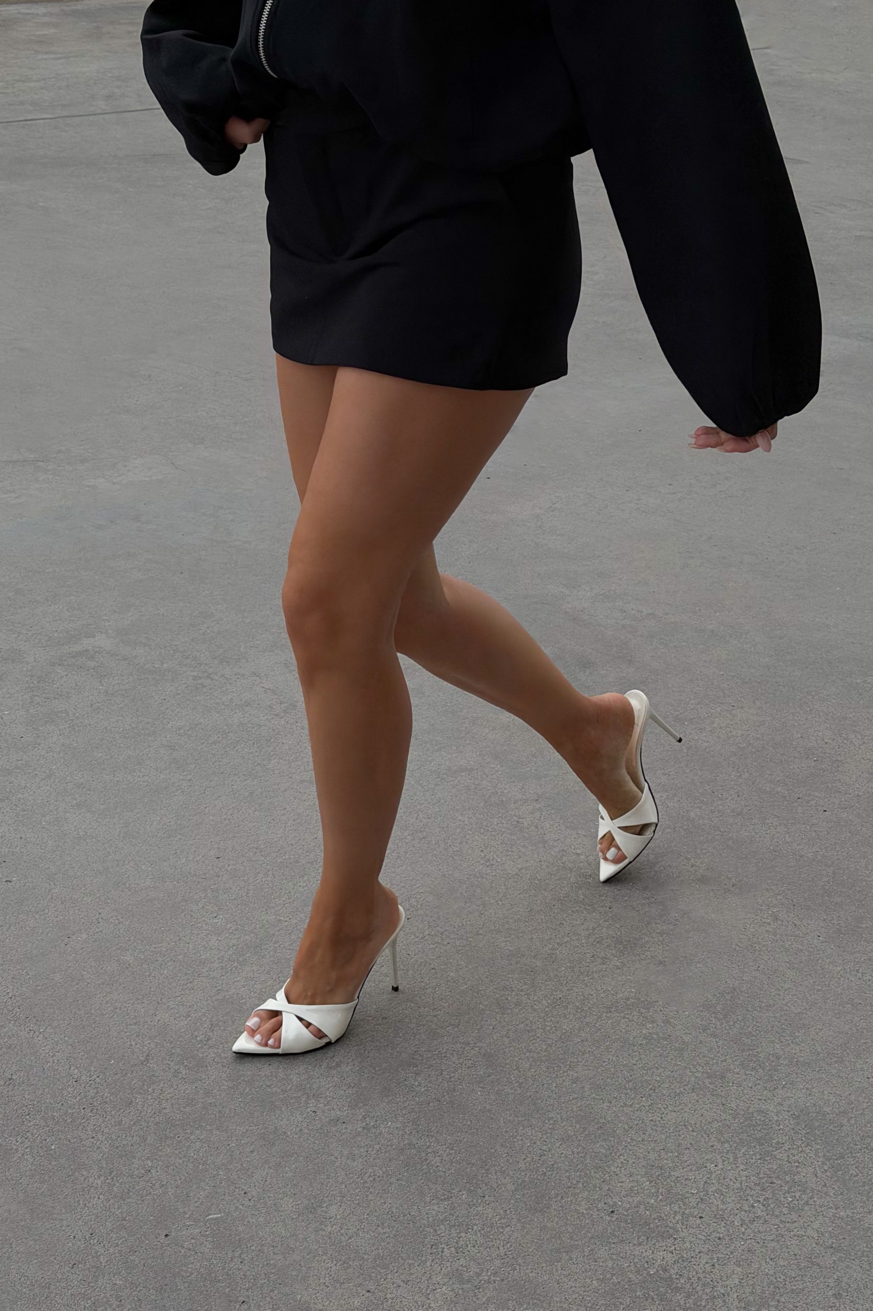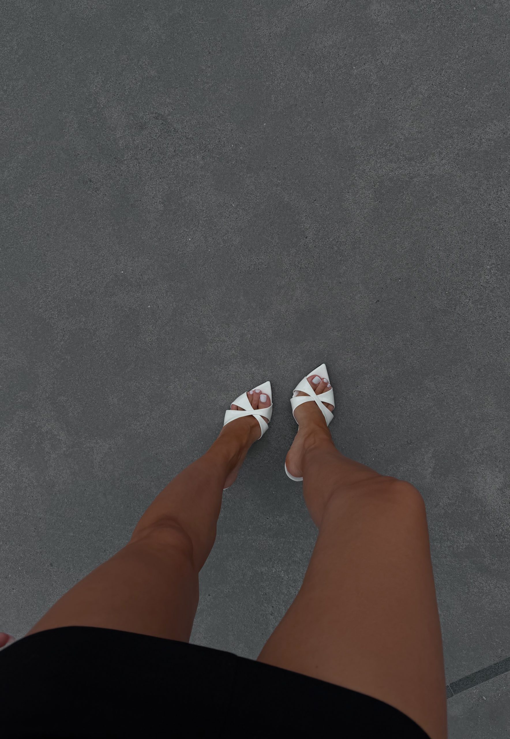 Λουστρίνι σπασμένο λευκό mule , με χιαστη σχέδιο στο κουτεπιέ. Αγκαλιάζει υπέροχα το πόδι και δίνει σταθερότητα .